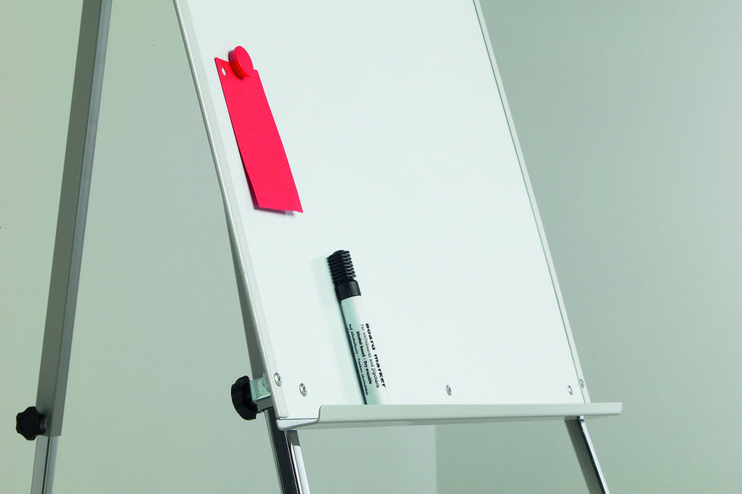 Szabályozható papírfelfüggesztő csavar. Mágneses hátsó panel. Maximum 190 cm-es magasság. Rögzített tolltartó tálca.