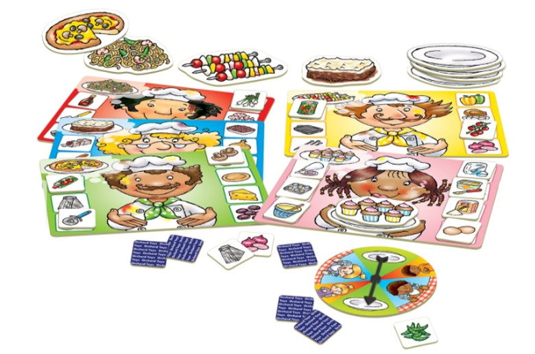 A Bolondos szakácsok játékban hozzávalókat és a konyhai eszközöket kell gyűjtögetni és elkészíteni egy kiválasztott ételt. Könnyen tanulható társasjáték, mely fejleszti a megfigyelést, a memóriát, a párosítási képességet.