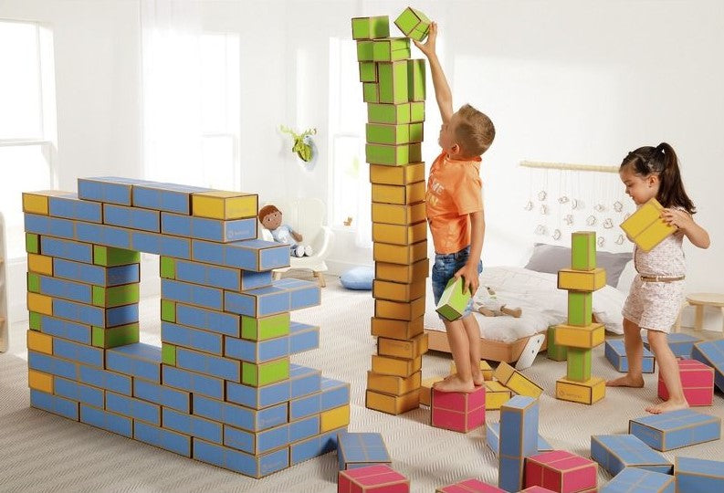 Az ARHCIbloc karton téglákból lehet építkezni. Nagyon könnyű és biztonságos gyerekek számára, miközben rendkívül szilárdak
