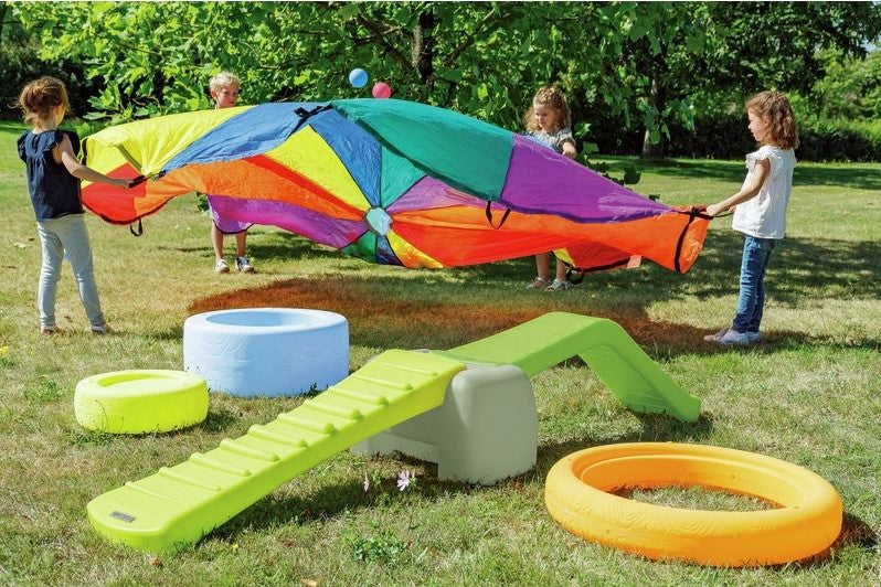 Ezeket az ejtőernyőket csoportos játékokhoz tervezték, és kiválóan alkalmasak a gyerekek mozgáskészségének fejlesztésére. Az ejtőernyős játékok fejlesztik a csoportszellemet, a társas kapcsolatokat, izgalmasak és mozgalmasak. Kültéri és beltéri használatra is alkalmas.